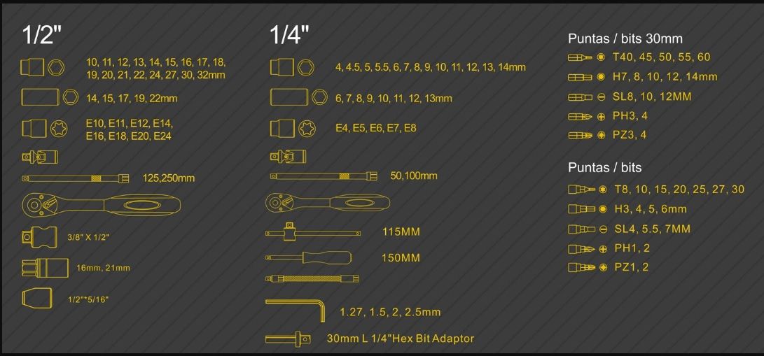 JUEGO LLAVES VASO Y CARRACA DE 1/4" Y 1/2" DE 111Pzs.NV95612
