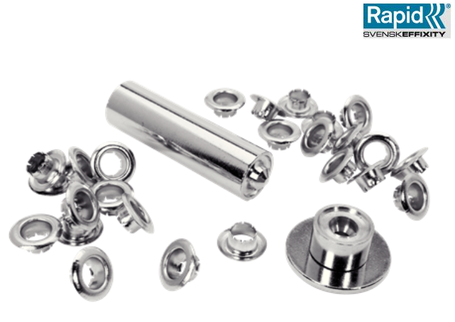 Blister con 25 ojales de 6 mm para cuero y calzado.Incluye un botador.